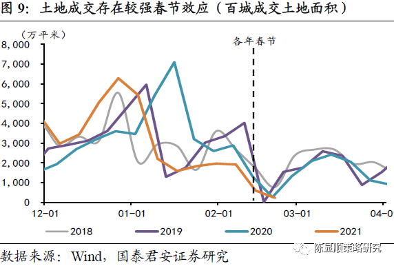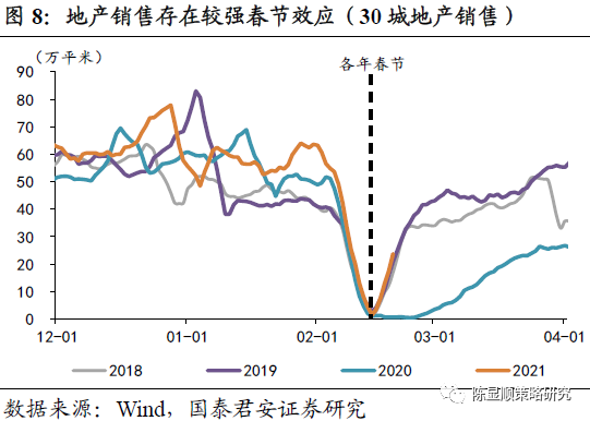 由于地产相关高频指标基本都存在比较强的春节效应,因此我们将历年高频数据以春节为基点对齐,同时为避免2020年低基数的干扰,以2018、2019年同期均值进行比较。主要表现为两个方面: