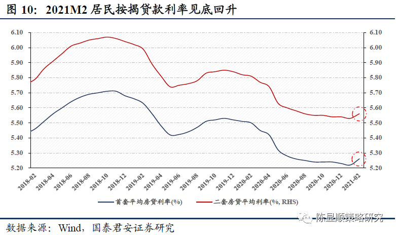 节后开工潮来袭引领2021H1新开工超预期。尽管截至2020M12,地产新开工与施工略显疲弱,但该数据具有较大时滞。2021M2居民按揭贷款利率见底回升,按月计算平均回升3BP。据融360的报告,当前银行针对房地产开发商的放款周期拉长到2个月以上,部分城市甚至需要4-6个月,这对开发商的资金回款形成重大考验。预计后续反向提高首付比例与推盘加速换首付会成为主导。依开发商仍然偏多的在手土储推断,2021H1的新开工与销售总量均将超预期。