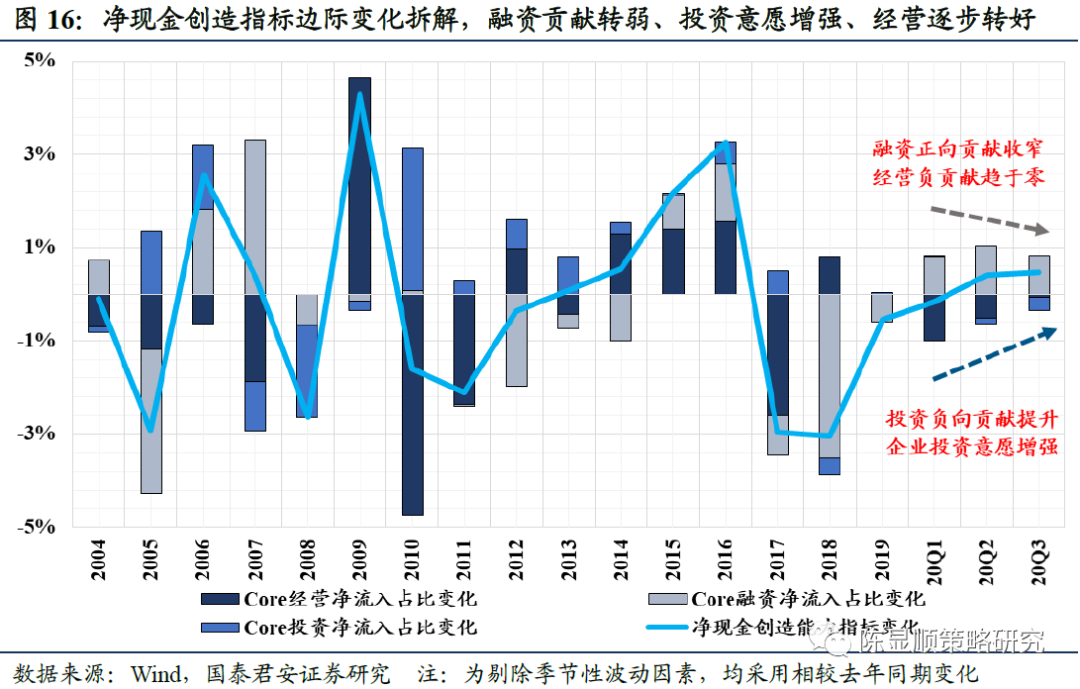 我们发现,疫情至今,当前企业的净现金创造质量已明显改善,现金增长的动能由“融资主导”逐步向“内生驱动”切换: