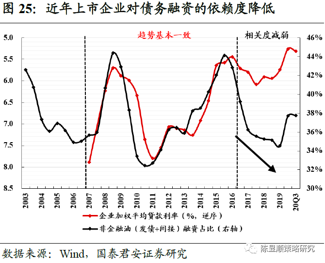 近年经济结构转型叠加金融监管背景下,企业行为有所转变,更借助于商业信用以扩充流动资金,此外,对债务融资的依赖度也有所降低。传统意义上融资依赖型、利率敏感型行业近年的投融资模式也在发生变化。