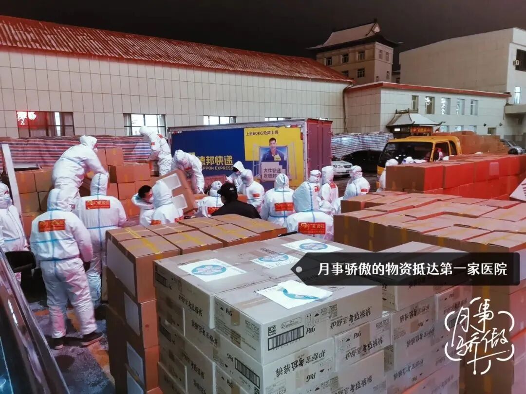 月事骄傲的物资抵达第一家医院