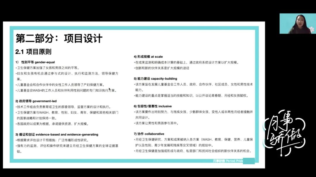 Yiying为大家讲解“月经健康与卫生”项目设计需要遵循的原则