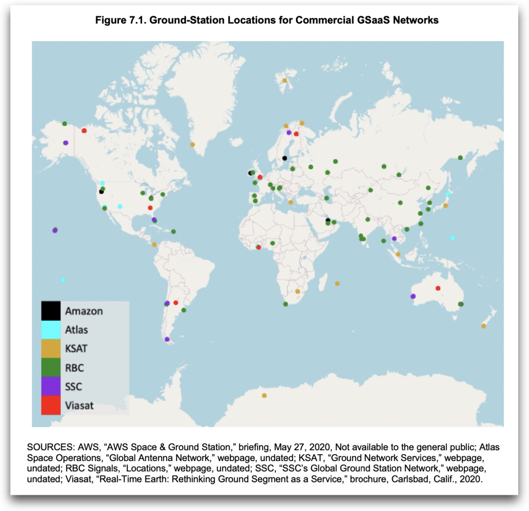 从目前的客户和合同来看(表 7.1 的底部),无法判断当前是美国政府客户还是商业客户是主要客户群体。服务时间最长的 SSC、Viasat 和 KSAT 公司主要服务于政府客户。SSC 和 KSAT 与美国和外国政府航天机构签订了合同。他们的过往经历可能对未来的政府事务有利。在市场的新进入者(即 Atlas、AWS 地面站和 RBC Signals )中, RBC Signals 似乎以美国政府为最大目标客户,并从两个 SBIRs 项目中获益,其中一个是由空军赞助的。Atlas 正在积极与 DoD、NOAA 和 NASA 合作,尽管它也有一定的商业遥感客户。目前 AWS 地面站客户均为商业客户;然而, AWS 地面站也在计划与美国政府机构接洽。