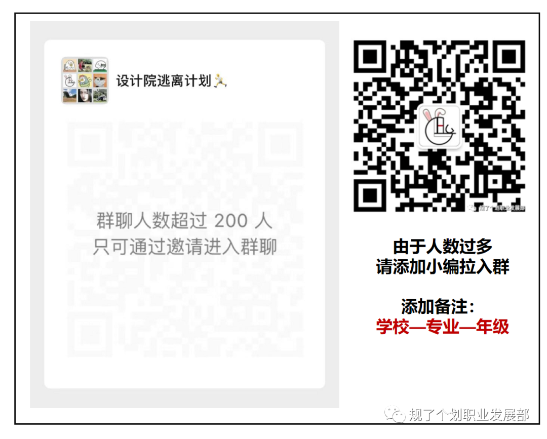 设计院逃离计划群,想转行的小伙伴扫码加入: