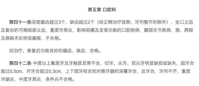 要成为人民子弟兵必须要有一口好牙。根据全国征兵网的介绍,有三颗以上的深度龋齿,或丢了2颗以上的牙齿,你就当不成兵了。