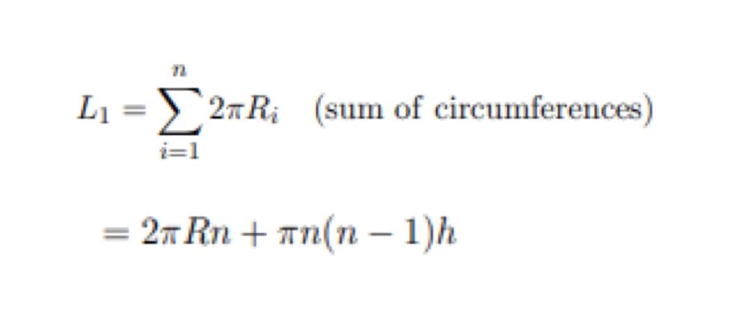 那么,想要算出纸的总长度L1,我们只需要算出每一层圆的周长,再把它们加起来就行了。是不是非常简单。