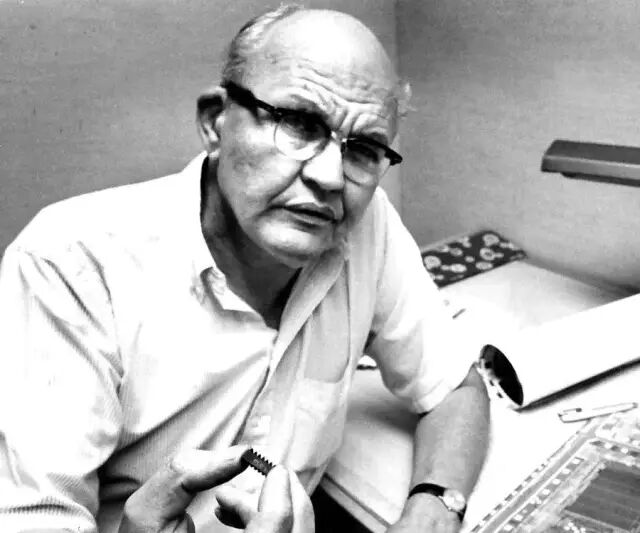 几个月后,第二次世界大战爆发,基尔比被派到印度的一家茶叶种植园,那里是美军前哨的无线电修理店。那时候,这里荒无人烟,到处都是黄沙,很少树木,几乎没有路和电,甚至连房子也很少。➢战争结束后,他去了伊利诺伊大学,主修电子工程,并于1947年获得理学学士学位。那是电子学突飞猛进的时代。➢1947年,3名美国人发明了晶体管——第一个具有重要商业价值的半导体装置,这使得量子物理学和固态电路马上有了发展方向。一开始,这只是一群高智商的年轻人,过着一种类似于乌托邦的实验生活。![]()