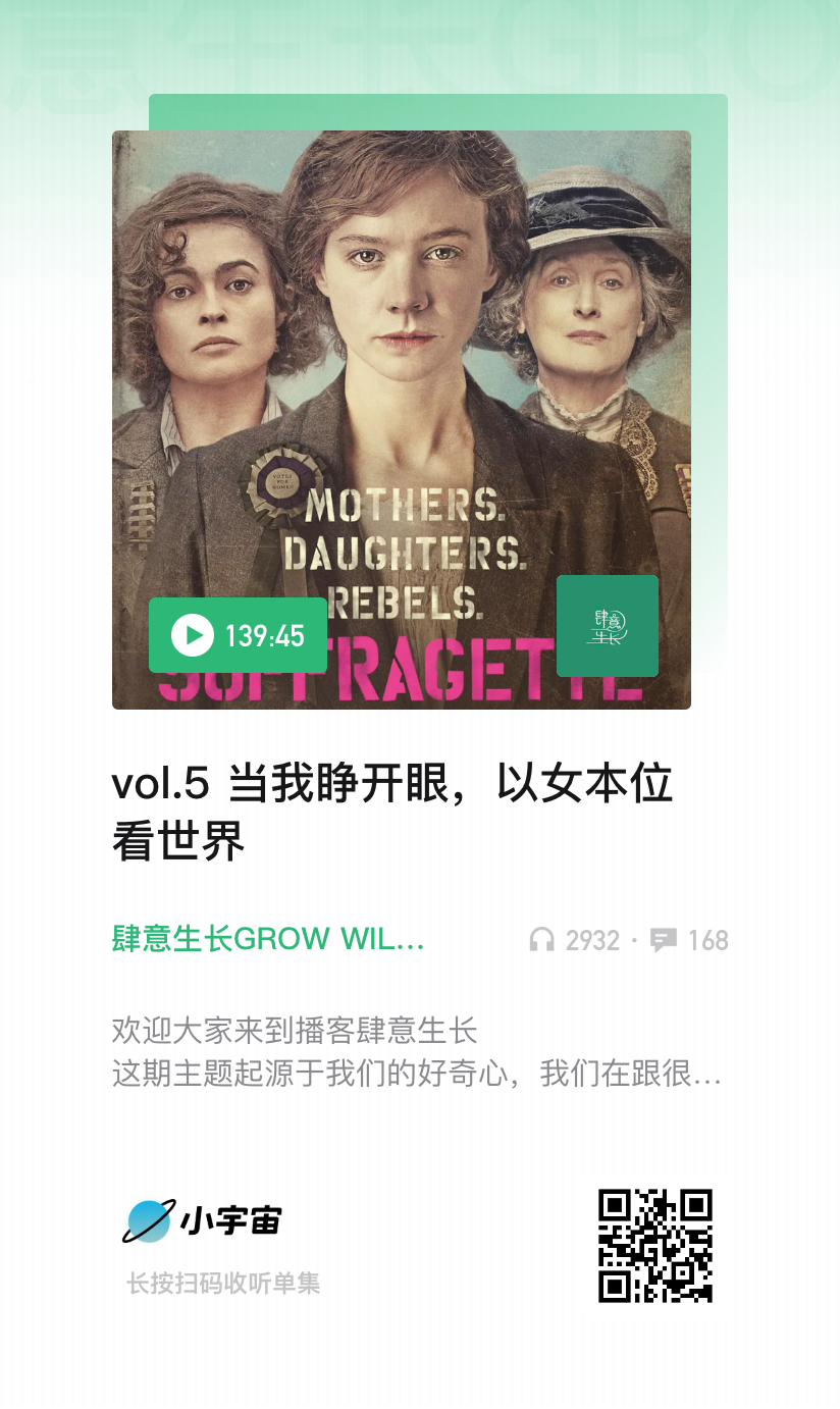 女性意识的最初萌芽,因为我们每个人成长经历和生活环境的不同,而不尽相同,但这背后都蕴藏着一个个灵魂对公平、自由、独立的追求和思考。这期播客邀请到主播的几位朋友,讲述自己的故事,分享自己如何开始女性主义思考。
