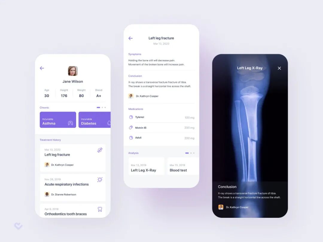 最后,重要的是要记住,每个设计师都有自己的观点,认为这个或那个决定是合理或有效的。他们可能会对 APP 架构和导航的一致性、严谨的设计解决方案,以及产品的实用价值深信不疑,以至于忘记了测试。通过不断的实践,设计师提高了自己的 共情能力,可以更好地理解用户需求。但事实上,直觉和经验带来的潜在陷阱也会给应用带来负面影响。只有在分析用户与 APP 界面交互的相关数据后,才能得出相对准确的结论。测试有助于及时获得反馈,覆盖 APP 中的所有行为场景,并检查交互模式。用户的积极参与 是成功的关键。相关测试受众的年龄、职业、地理位置、性别、文化和宗教背景等要尽可能接近目标受众,越接近越好。尽可能多地让他们 使用 APP 的主要功能并收集反馈。Alex Samofalov 设计的患者卡片 APP结论