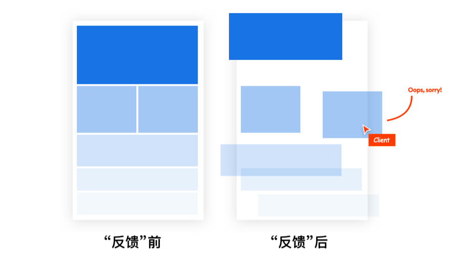 我们通常使用 Sketch 进行工作,但如果客户选择用 Figma 启动项目,那这些项目也将在 Figma 中完成。最近有位客户要求能够编辑我们创建的 Figma 文件,我们很不情愿地妥协了,而接下来发生的就是典型设计师的噩梦了。首先,他们意识到可以在文件中看到设计师在工作中实时出现的光标,因此他们早上登录后就连续几个小时追踪设计师的工作,直到我将他们踢出了文件协作。这其实就是 老板整日站在你身后并确保你没有摸鱼的微缩管理版本。想象一下,每次打开微博或朋友圈时,背后都有一个鞭打你的鞭子。那位特定客户其实对 Figma,还没了解到知道实际怎么使用的程度。他的目的只是希望能够自己更新线上页面的副本。(客户希望加大项目参与度和掌控感,随处标记自己的修改意见,掌控设计师工作的进度)然而实际的大部分情况,他们总是会不小心将整个模块移入或移出了画板,然后就破坏了整个设计。