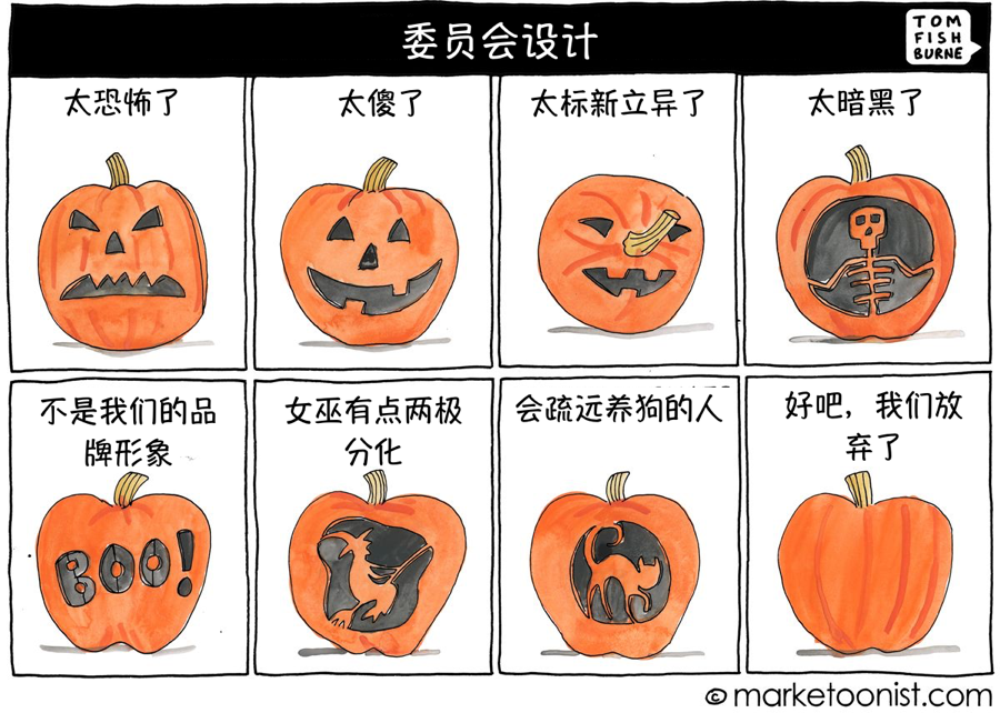 How to Show Collaboration我们可以再看一下上面的图片。四个人将不同内容拖到统一画布上的行为并不是协作。这属于 委员会设计 类型中的最糟糕的一种,甚至不应该再将其称为设计。(委员会设计(design by committee)是贬义词语,是一种反模式,是指设计项目中有多人参与设计,而且没有一致的计划或是看法。委员会设计属于民主式的设计,这和 design by dictator 独裁式设计(或专制设计)相反,后者是由专案负责人决定其设计。独裁式设计在最终设计中不考虑成员的意见,由专案负责人负专案成败的责任。)我问了一些有深度使用 Figma 的大型团队,他们也不认为团队是像上图所示的那样使用该工具(各抒已见,没有统一的管理和决策)。