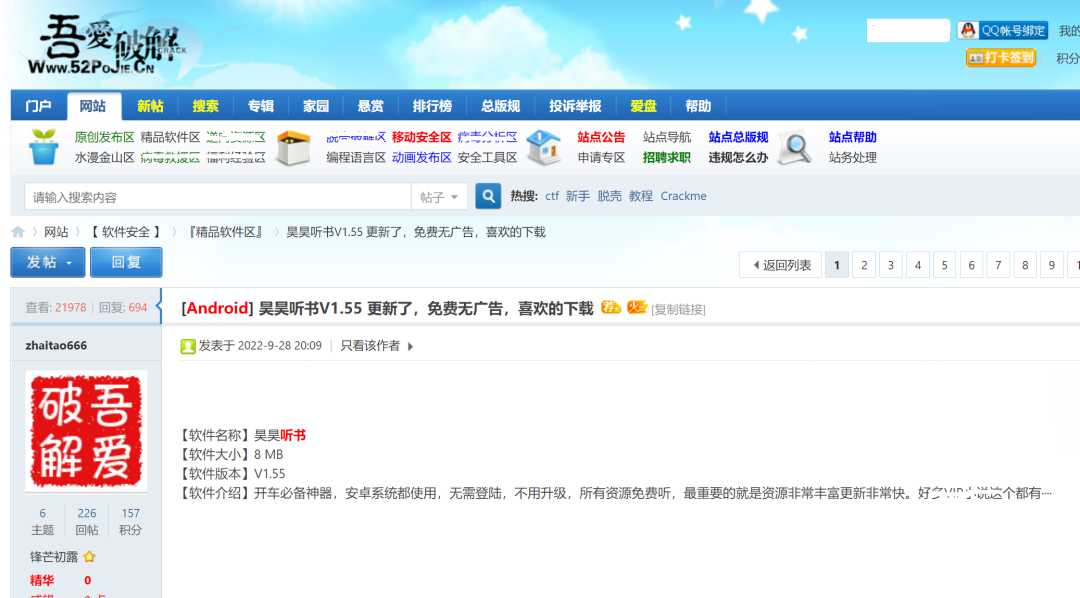 但是没关系软件这么多,总有一款适合我们的。今天盒子君在吾爱破解论坛,又发现了一款非常不错的听書软件:昊昊听📕;关键是没有犷郜而且全程免费。这款听書神器和以前分享的不一样它支持:网盘听书、本地听书当然也内置了很多听书源。