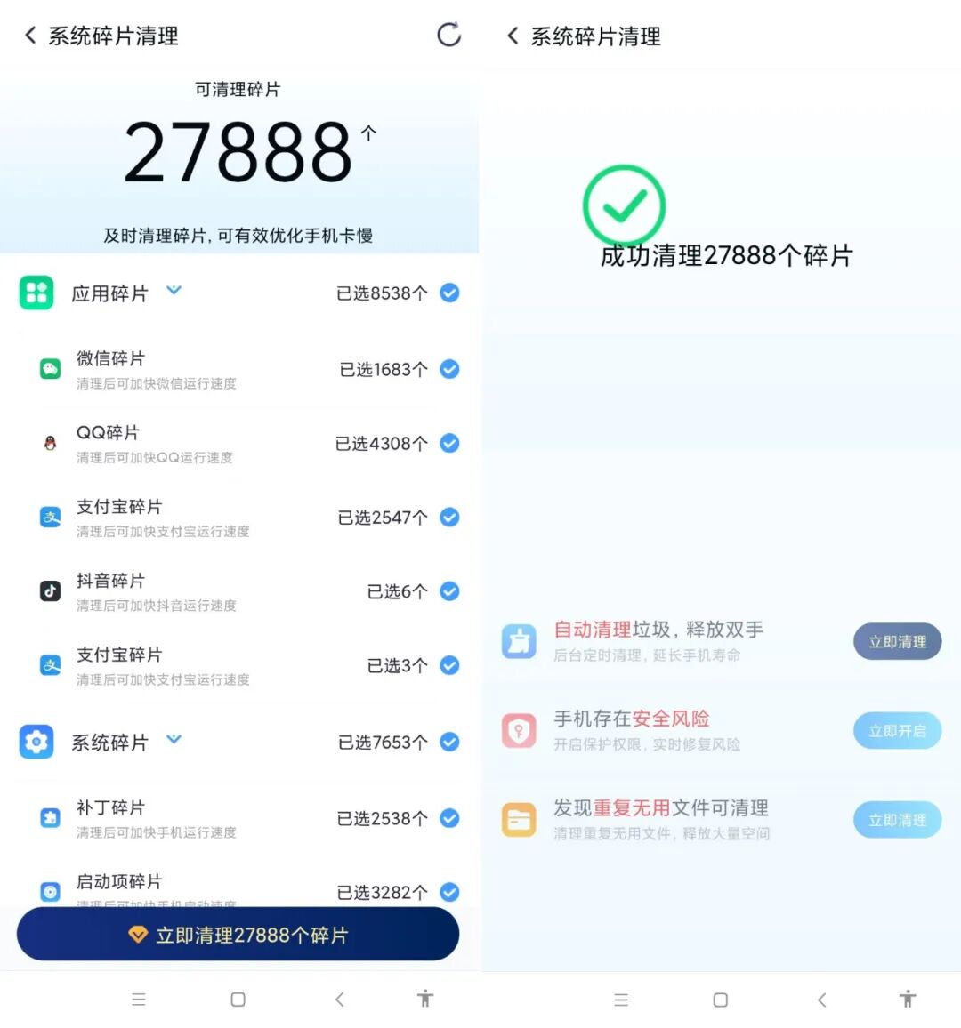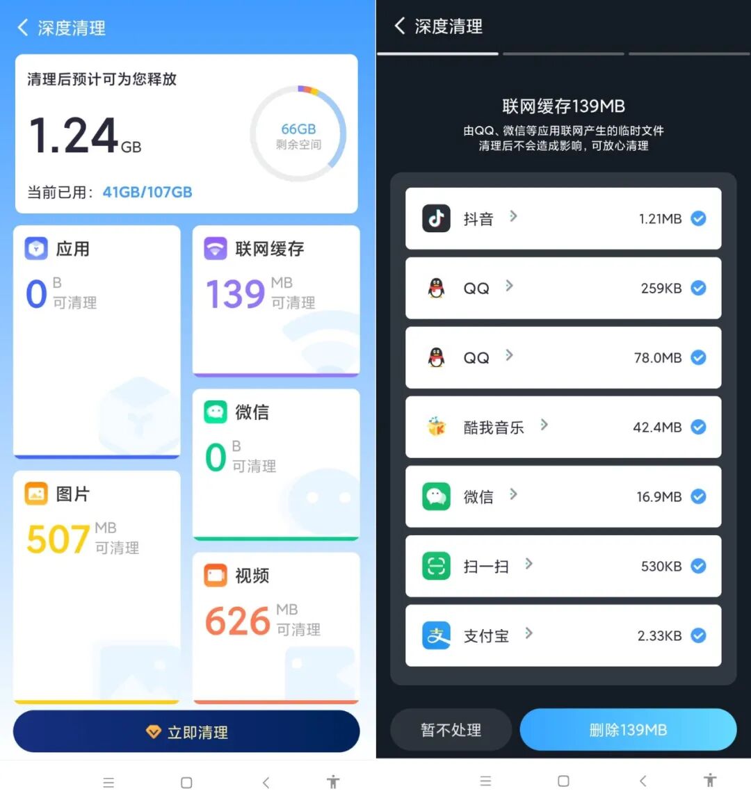 没办法,那些应用产生的“垃圾”总能想发设法把我手机内存给“喂饱”。这在我们平时聊天、追剧、玩游戏等等产生的,数据缓存、浏览碎片、缓存文件等都会占据手机内大部分存储,那些垃圾依旧会盘踞在手机里不会散去,久而久之手机就越来越卡,这就非常的难受。