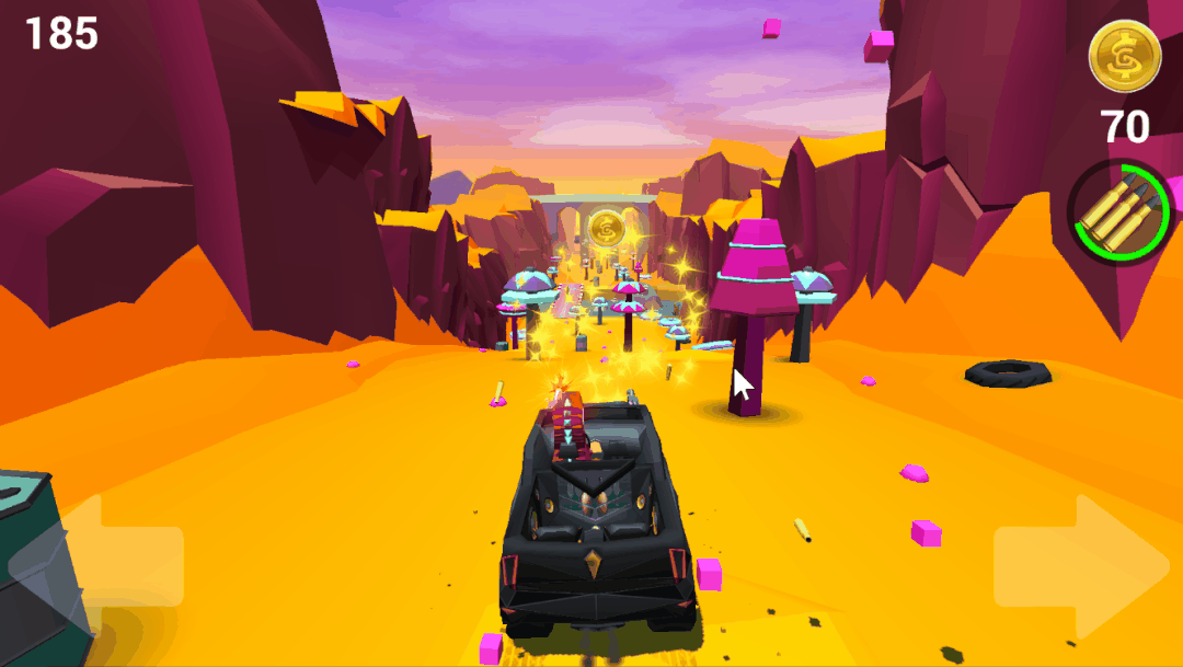 为了保留游戏的趣味性,金币需要自己玩游戏去获取,然后再道路上前进的更远,竞赛中,你将能够在路上收集到多种强化道具,如导弹、氮气加速、机枪等。