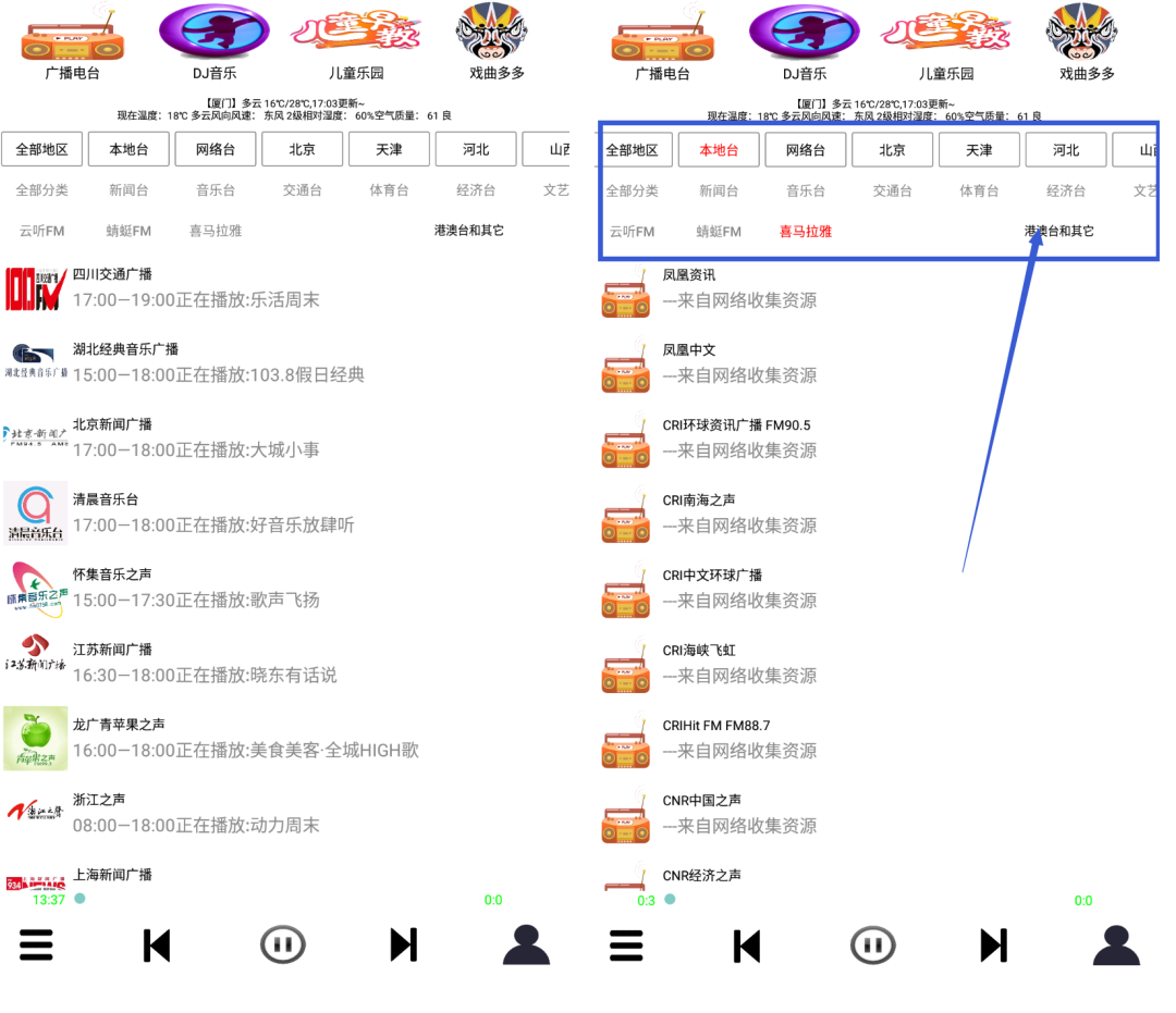 所以今天盒子君就给大家整来一个安卓手机端全新的神器:红辣椒FM,别听它的名字以为只有FM收音机的资源,其实不止。你可以在这里听FM广播、听DJ音乐、听儿童的各类歌曲视频、听戏曲,可以说是老少咸宜。