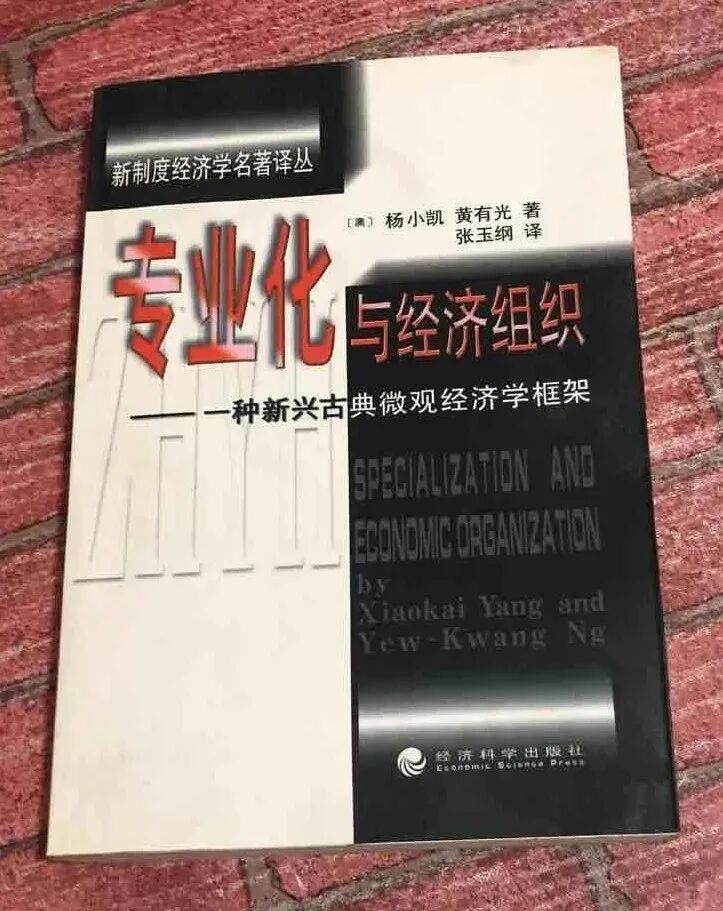 这篇论文发表以后,杨小凯一举成名。从1980年代末以来,美国经济学年会连续四次组织了重新思考贸易和增长理论的专题研讨,这四次专题研讨的召集者分别是Paul Krugman、Gene Grossman、Robert Lucas和杨小凯,1992年的这次专题研讨的就是讨论杨小凯及其合作者的工作。1993年,杨小凯和黄有光合著的经济学专著《专业化和经济组织——一种新兴古典微观经济框架》(《Specialization and Economic Organization——A New ClassicalMicroeconomic Framework》,North-Holland, 1993)通过了严格的匿名审稿程序,被列入了“对经济分析的贡献”丛书,在世界著名的经济学出版公司——北荷兰出版公司出版。这本专著初步建立了新兴古典经济学的框架。在这个框架中,专业化经济、劳动分工和经济组织结构被引入了经济学的核心部位。他们引入专业化经济和交易费用,并且沿用个人最优化和市场均衡的方法,证明劳动分工内生演进的基础是专业化经济与交易费用之间的两难选择。这可以解释企业、地区性贸易和国际贸易的产生;解释生产力、贸易依存度、专业化水平、最终产品和中间产品的种数、交易层级系统和城市层级系统的层次数、生产集中程度、市场一体化程度以及生产迂回程度的提高;解释专业中间商、城市、货币、失业和景气循环的产生。同时,他们还证明了市场的功能要比经济学家通常认为的复杂得多。它不仅能够有效的配置资源,还能够寻求有效率的专业化水平和分工水平,发现有效率的市场结构和制度安排,找到有效率的交易层级系统,并且确定有效率的货币制度和景气循环模式。![]()