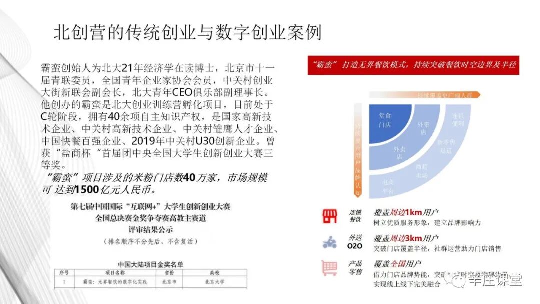 第二个,时代,赶上了数字经济时代。数字经济时代,在全世界是一个大的概念,但是在中国还存在数字素养提高的问题。如果说我们解决了绝对贫困的问题,我们现在面临大的问题,解决全民的数字素养问题。就是他对数字经济懂不懂,理解不理解。北创营面临的问题就是,创业是在数字经济的领域里,你还在传统的经济领域里。我先讲传统经济领域创业是个什么样的概念。