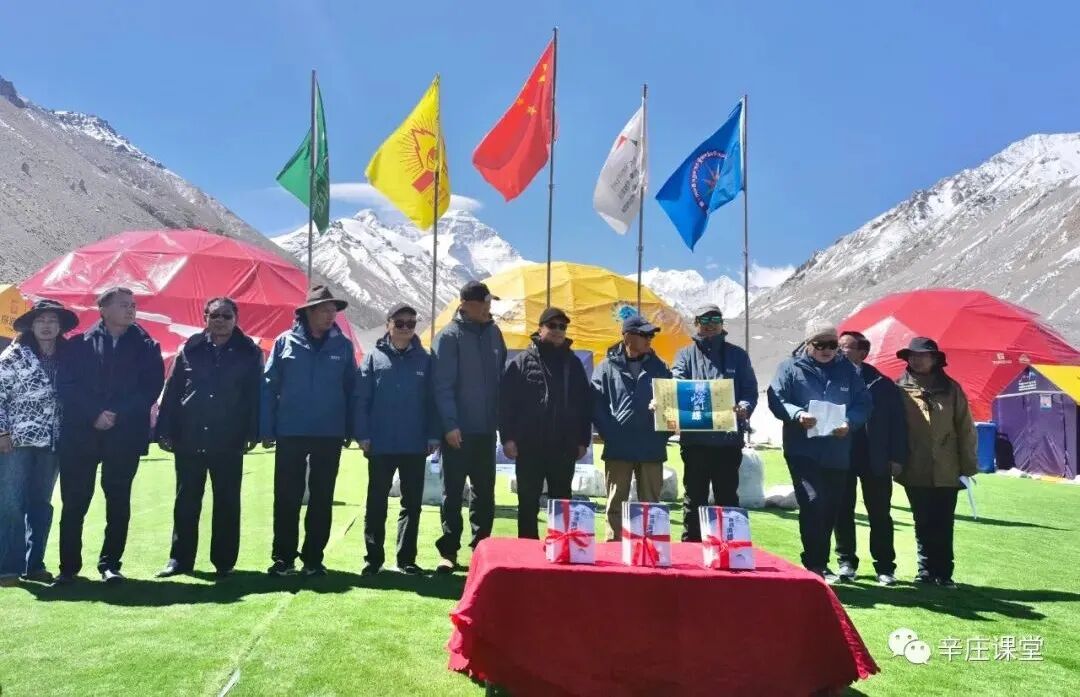 2021年5月9日中午,珠穆朗玛峰顶旗云停下了匆匆的步履,将目光投向了珠峰大本营。这里正在举办“《珠峰海螺》作者黄怒波先生和出版方人民文学出版社共同向日喀则市、西藏登山协会、西藏圣山登山探险服务有限公司队员赠书”活动。本活动由人民文学出版社、日喀则市人民政府、西藏大学、北京大学校友会、西藏登山协会主办,由北京大学西藏校友会、北京大学创业训练营、西藏圣山登山探险服务有限公司、辛庄课堂、西藏北京商会承办,醍醐文化艺术协办。