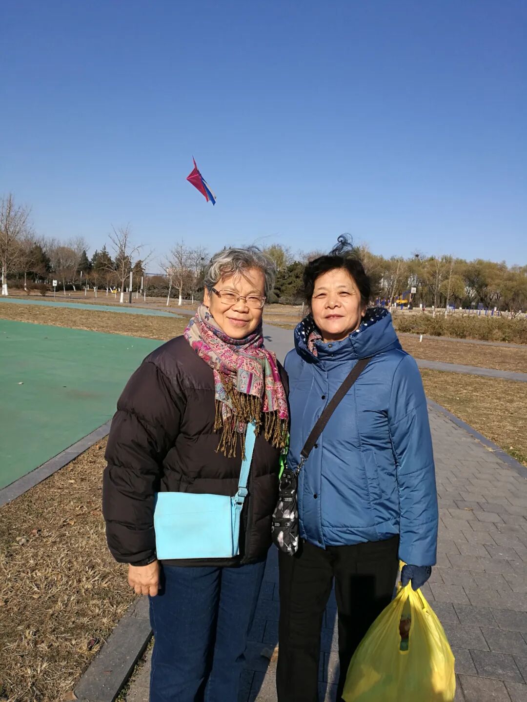 2016年11月23日,北京太阳宫公园:西大同班好友岳珑,看了经济所微信公众号发布的“低龄与高龄老人的合作与冲突”,专程来找朱玲讨论五零后的养老安排。