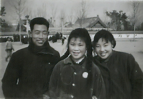 左起:西大体育教师汪建成、朱玲和姨姨黄代群。1969年2月,北京。