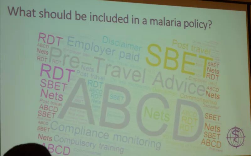 大家针对公司制定疟疾相关规定的主要因素,是否能够强迫员工服用抗疟疾药物,在疟疾低流行区是否有必要服用抗疟疾药物以避免尽可能降低感染风险,是否推荐长期外派人员服用抗疟疾药物,员工在当地感染疟疾能否及时得到治疗以及对于已经有慢性疾病等状况的员工派遣到疟疾高流行地区是否合适等问题进行了讨论。