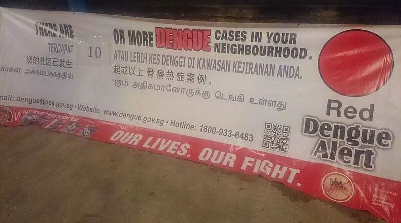 新加坡社区出现登革热后会出现警示横幅