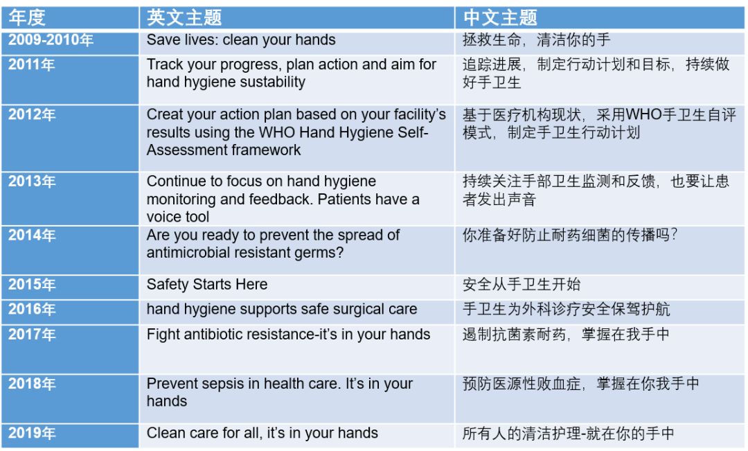 表:历年手卫生日的主题