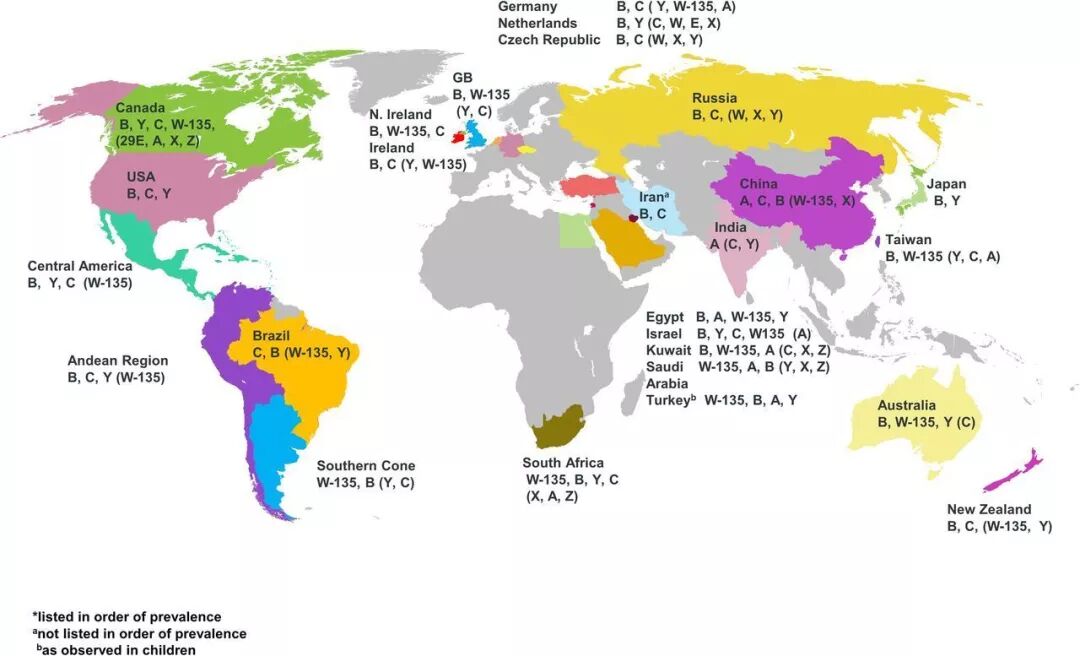 世界各国主要流行的血清群各不相同