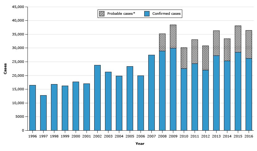 但是研究表明,患病数要远远高于实际报告病例数。在美国,每年大约有30万人被诊断出患有莱姆病,是报告病例数的8至10倍。