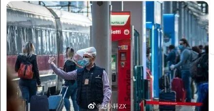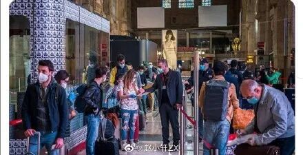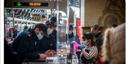 复工后意大利,口罩成了必备品。图片来源微博(见水印)