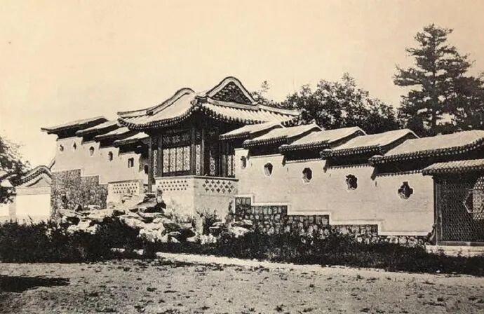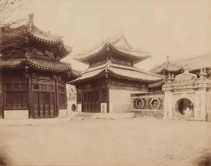 1906年,德国建筑学家恩斯特柏石曼拍摄的万寿寺连廊,已毁于大火。![]()