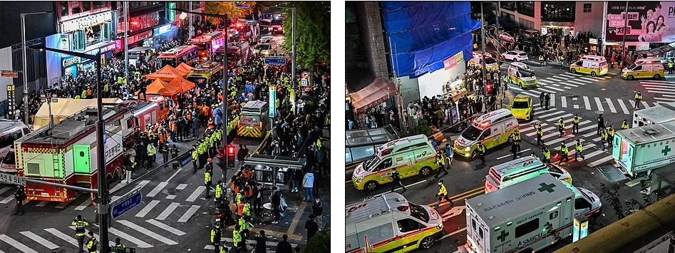 尹锡悦正在主持一个紧急会议,下令治疗和疏散灾区民众应该是当务之急,并宣布全国哀悼一周并以及政府大楼和公共办公室降半旗致哀。据目击者说,周六晚上梨泰院地区的人群激增造成了“地狱般的”混乱,人们“像多米诺骨牌一样”互相撞倒,一些人在接受心肺复苏时鼻子和嘴巴流血,而另一些人穿着万圣节服装继续在附近唱歌跳舞,完全没有意识到情况的严重性。还有些人称,在悲剧发生前的几个小时里,他们几乎没有看到人群控制和警察在场。“我还是不敢相信发生了什么。就像地狱一样,”梨泰院一家促进旅游业发展的非营利组织的官员金美成(Kim Mi Sung,音译)说。