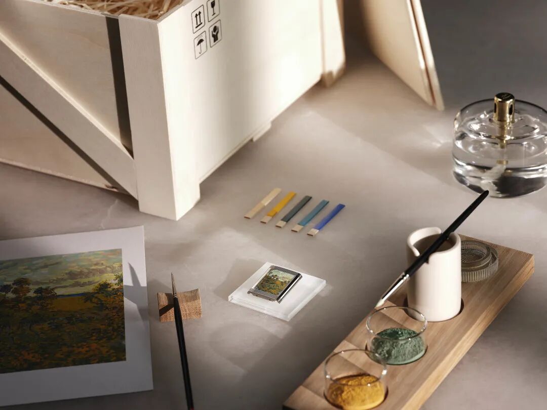 三款全新作品每款时计的表盘呈现出截然不同的雾蓝色或绿色,与隐藏于表壳背面的珐琅画作色调相互呼应,独特的表盘设计衬托出精妙美观的玑镂饰纹背景,简约的设计与细节丰富的微绘画作形成鲜明对比。
