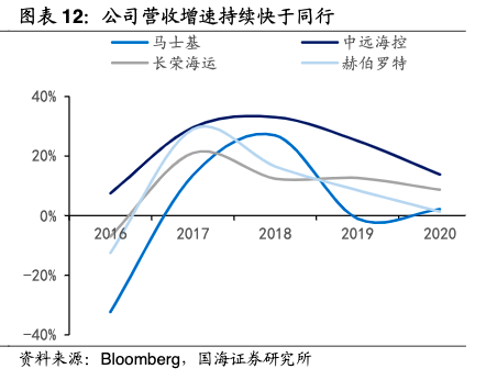 此外,如果排除黑天鹅事件的发酵作用,中远海控的业绩实际上也在近年一直稳定增长。实现稳定向前的时间拐点出现于2018年之后,彼时,在结束了英国脱欧、特朗普胜选、意大利公投失败的黑天鹅事件次年,全球8大船公司决定成立2M、海洋和THE Alliance三大联盟。这一标志性事件意味着此前相互竞争的航运公司形成合力,以求在产业链中掌控更大的话语权。
