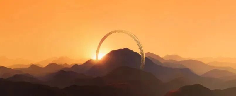 在画面的深处,晨光即将开始耀眼,一个巨大的金属质感圆环跨越山峦,有《沙丘》中赛博朋克与自然结合的即视感。图片要传递的寓意,不止于一部手机,华为Mate50系列的回归,也是华为在新周期的开端。
