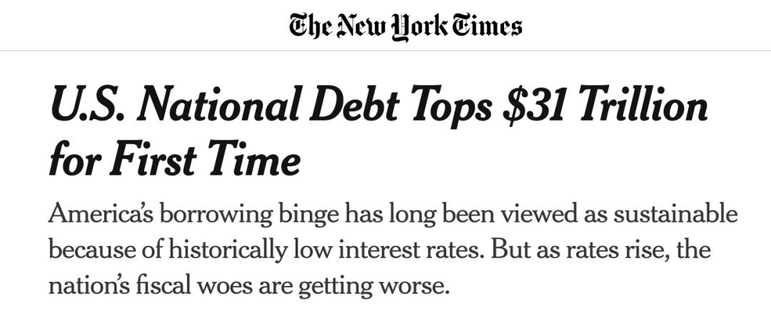 这一数字也进一步逼近31.4万亿美元的法定债务上限。