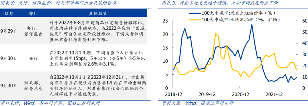 自上而下的宽松政策力度空前,且形势上有所突破。9月底,央行、银保监会、财政部等部门出台政策组合拳,有望使居民中长期贷款存量企稳回升并对销售起到一定的提振作用:个人住房商业贷款和公积金贷款利率双双下调之下,房贷利率预计迎来空前的历史最低水平;针对改善置换需求的个税退税优惠政策则在形式上有所突破。
