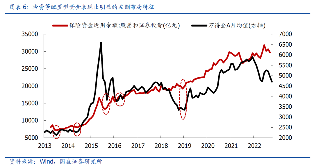 第三、从资金来源看,历次熊市见底前后,以资产配置为目的的长线配置资金(险资、社保等)是入场的主力。这也在一定程度上解释了大底后蓝筹风格为何会阶段性领先。
