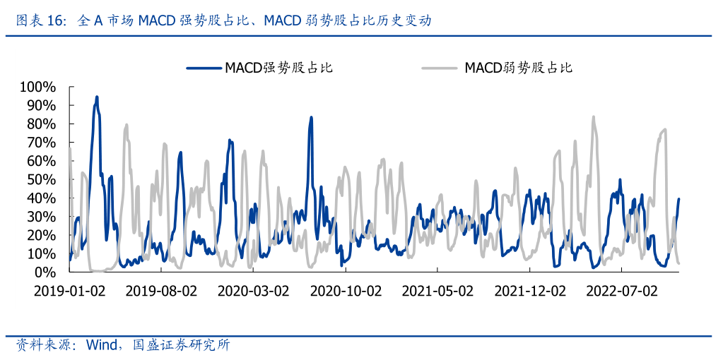 6)全A市场MACD强势股占比回升至39.48%,弱势股占比回落至4.58%。