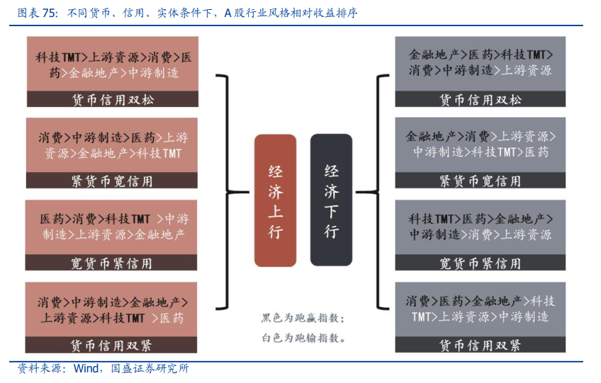 ——西落、东升,“扩内需”行情有什么特征?历史上出口周期转负、内需全面发力,通常对应牛市行情启动,且市场风格整体偏向大盘蓝筹,金融周期&消费为代表的内需依赖型行业占优。