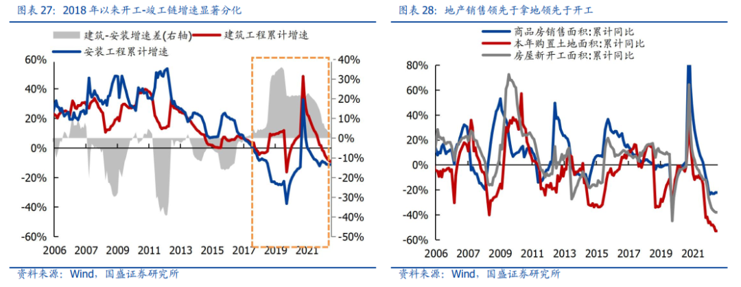 摸着石头过河——2023,似乎哪一年都不像。我们刚刚经历了一个稳增长大年,2022H1专项债发行速度创下历史新高,重点省市重大项目开工也有10%增长。但另一边,地产景气却创下历史最差,1-10月商品房销售面积同比-22.3%,土地购置面积已经腰斩(累计增速-53%);房地产新开工面积累计增速-37.8%,施工与竣工面积累计增速分别回落至-5.7%、-18.7%。