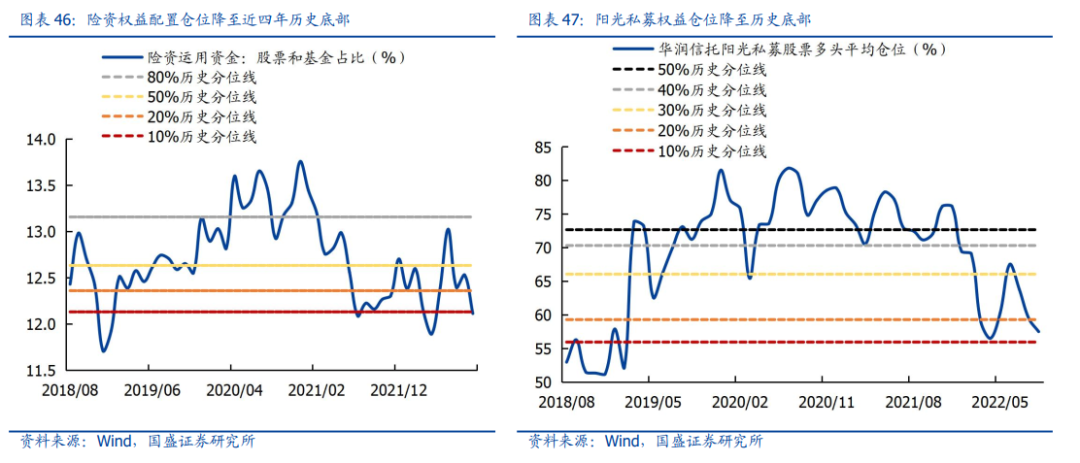 从险资来看,险资权益配置年末降至近4年底部,已突破下10%历史分位;从私募来看,权益仓位三季度再度回调,现已降至近4年历史底部,同样临近下10%历史分位。