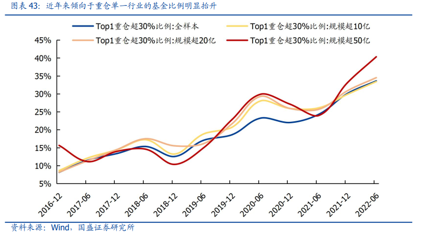 回顾主动偏股基金的股票仓位变迁,2008年、2010年、2015年、2018年均经历明显的降仓操作,而今年以来,市场高波动之下,股票仓位则一直延续高位,且平衡混合型基金的仓位还有所抬升。基金权益仓位持续高位主要源自两点:其一,存量基金赛道化特征日益明显,倾向于重仓单一行业或风格的基金比例明显抬升;其二,新发基金普遍快速建仓(两个季度内)且仓位普遍高于“老基金”。