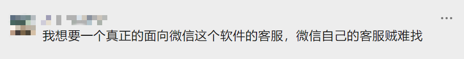 看到这个消息后,有网友评论“我想要一个真正面向微信这个软件的客服,微信自己的客服贼难找。”