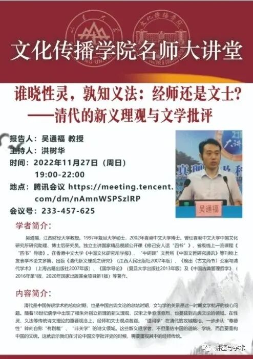 11月25-28日:语言 文学 历史艺术讲座42场!国家社科基金申报专题讲座3讲!语言学学习与语言研究漫谈;文字的宗教性和世俗性