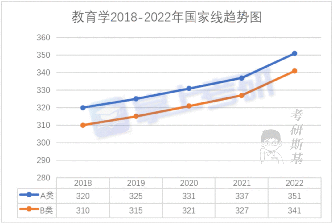 教育类专业的国家线从2018年起,连续5年持续增长,一直稳坐“考研热门专业”的宝座。2023年预计教育类专业(教育学、应用心理、体育、教育/国际汉语教育)的分数线有可能持续上涨。主要原因如下: