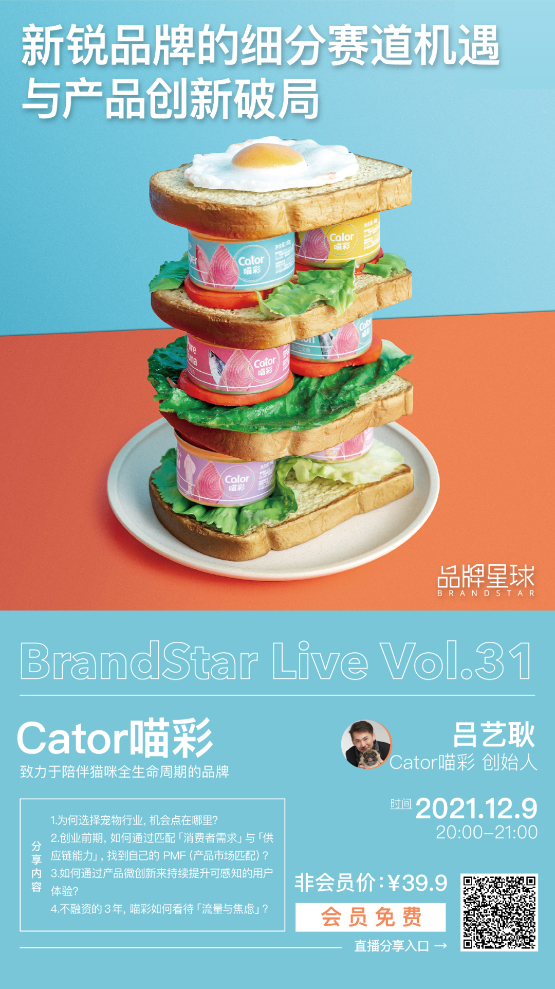 直播分享单场价 39.9 元,品牌星球会员免费。