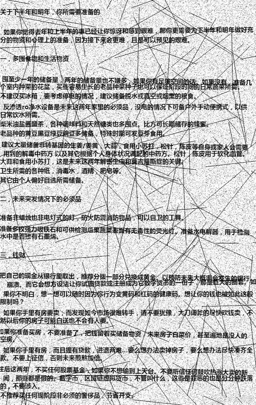 60年代的饥荒离我们太远,现在基本上3个月就是最大期限了。如果3个月都没有解除危险,那么后果个人已经无能为力了。