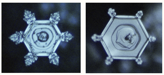 实验一开始先让水观看冠状病毒的照片,其结果呈现都非常相应。尤其第一班水第一个看出来的水结晶竟与病毒的样貌非常相似,让实验人员都感到惊奇。(图片如下)