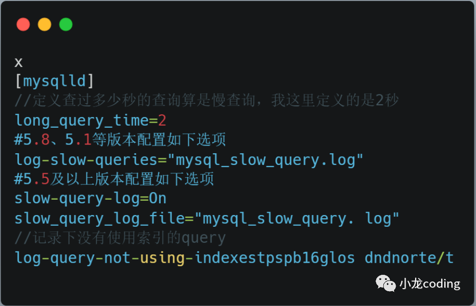 方式一:修改配置文件 在 my.ini 增加几行: 主要是慢查询的定义时间(超过2秒就是慢查询),以及慢查询log日志记录( slow_query_log)